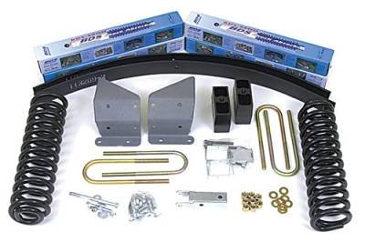 This kit includes two front Pro-Ride Coil Springs. The kit also includes a track bar relocation bracket and heavy duty radius arm drop brackets.