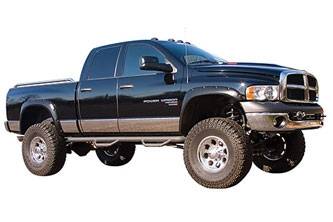 A dropped forged pitman arm is included to maintain the factory steering angles. A track bar relocation bracket properly centers the axle under the vehicle. Extended bump stops, brake line relocation brackets and Powerwagon specific sway bar are also included.