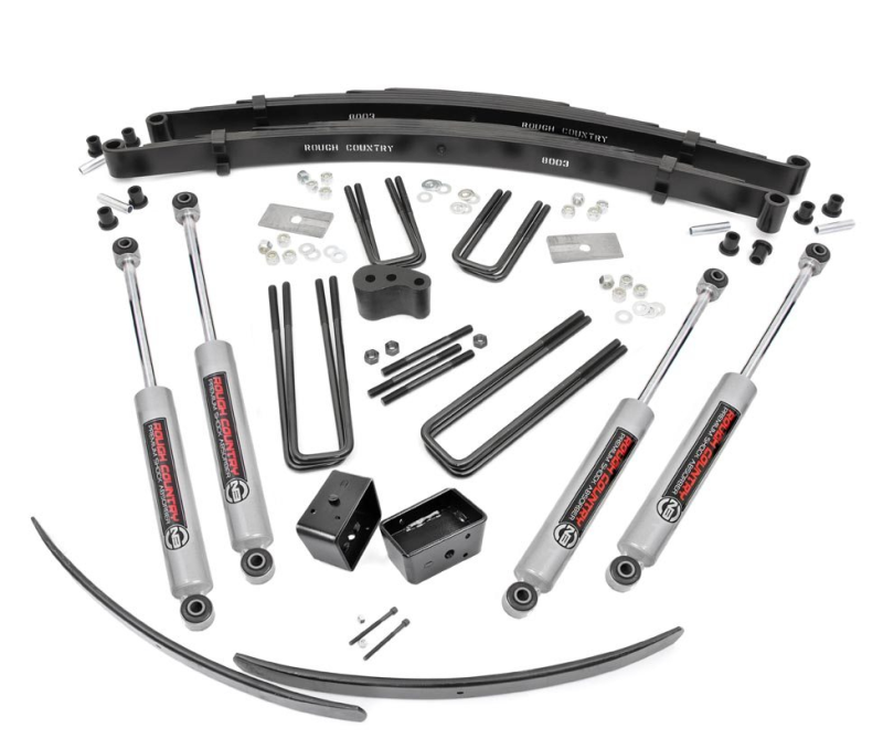 A set of Rough Country's premium N3 shocks are also included in this kit. These fine tuned 10-stage variable high-pressure Nitrogen charged shocks offer a fantastic blend of off-road action and smooth highway ride quality. With a durable 18mm spring-loaded piston rod and faster-cooling 54mm shock body.