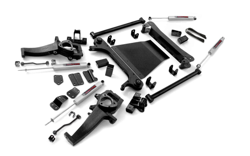 A set of Rough Country's premium N3 shocks are also included in this kit. These fine tuned 10-stage variable high-pressure Nitrogen charged shocks offer a fantastic blend of off-road action and smooth highway ride quality. With a durable 18mm spring-loaded piston rod and faster-cooling 54mm shock body.