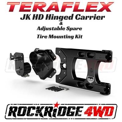 • Requires wheels w/ 5.0” backspacing or less – or TeraFlex Alpha HD Hinged Spare Tire Carrier Wheel Spacer Kit (# 1055005).