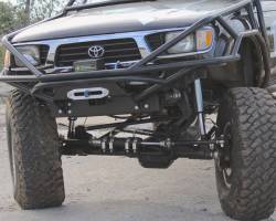 The Trail-Link Three™ Front 3-Link Kit is the only complete kit for Toyotas on the market today. This kit is affordable, user friendly, and strong. The link material is 2" x .250" wall DOM tubing, while the rod ends are 1.25" Creeper Joints™. All brackets are 1/4” steel, formed and welded. With 14” shocks we are getting 40” to 50” of articulation depending on the suspension in the rear of the truck.