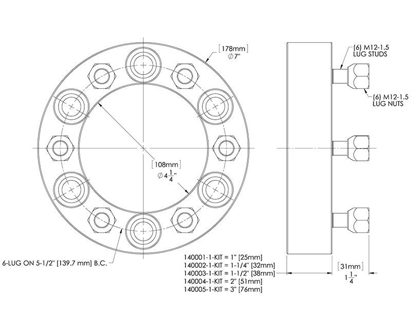 These bolt on wheel spacers are designed to give you a little more width without changing out your axle for a wider one. Great for use on solid axles conversions to make the front axle similar in width the wider rear axle found on 86 and up Toyota trucks. Bolt pattern is 6 stud on a 5.5" round circle. Features safety graded studs and matching nuts for proper fit. Made from Billet 6061-T6 aluminum. Class 10.9 studs and lug nuts. Five sizes available. Shipped as a set of 2 spacers w/nuts. Every spacer features a precision machined surface. Only high quality nuts and studs that are hardness graded and stamped are used. Six lug wheel spacers fit Toyota FJ Cruiser, Pickups, 4Runners, FJ-40, FJ-60 & FJ80.