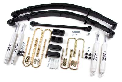 It's time to upgrade your Ford! The revolutionary new Zone 4" system features new front leaf springs that are designed to not only ride great, but will hold up over the long haul. A 1-1/4" solid steel track bar is included to properly center the axle after lifting. This track bar features new oversized urethane bushings for long term performance. The shocks were custom valved to work perfectly with the new Zone leaf springs to increase off road performance while still offering unmatched on road ride quality. With the front replacement track bar and the rear block kit, this system is one of the easiest installations on the market for a 4" system.