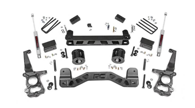 Give your 2015+ 2wd Ford F-150 an aggressive new look and unparalleled off-road performance with Rough Country's 4-inch Suspension Lift. This all-inclusive kit features everything needed to take your 2wd F-150 off the freeway and into the fields.