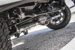 The additional 4" of lift comes from a pair of full length ProRide coil springs. These springs are available for diesel or gas engine specific spring rates for optimal performance and a true 4" of lift. These paired with your choice of BDS NX2 series gas shocks or the precision tuned FOX 2.0 performance gas shocks offer a smooth ride and improved control over rough terrain. To improve steering angles a forged drop pitman arm is supplied with an integrated drag link flip. Used in combination with the 1/4" thick heavy duty track bar drop bracket will position the front axle and keep the track bar angle in phase with the steering for improved handling. Also included for the front suspension are a pair of sway bar relocation brackets, bump stop extensions, brake line relocation brackets and a NX2 series steering stabilizer with mounting bracket.