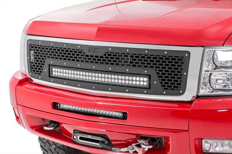 Give the front-end of your 07-13 Chevy 1500 a unique look with Rough Country’s Mesh Grille kit! This grille replacement kit swaps out your stock grille with the eye-catching, head-turning good looks of this aftermarket upgrade. With a unique, laser-cut mesh pattern surrounded by stylish, stainless steel button head bolts, this grill gives your truck a more menacing look that’s sure to draw attention. Each kit is powdercoated black to resist corrosion and give a long lifespan of good looks.