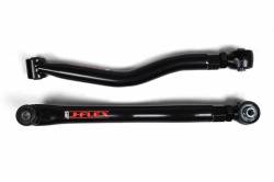 JKS Manufacturing adds J-Flex front adjustable lower control arms to its ever growing lineup of upgrades for the 2018-2019 Jeep Wrangler JL & 20+ Jeep Gladiator JT. Built for strength and improved performance, these bolt-in replacement arms dwarf the factory units built from 2” OD x .250" DOM tubular construction and feature swaged ends to maximize tube size and maintain wall thickness. The ends are robotically welded to ensure quality, strength and precision fitment. At the axle mounted end the arms uses a preinstalled OE-durometer premium quality Clevite rubber bushing to provide great durability, quiet operation and better isolation of road noise and vibrations. At the other end is a forged flex joint to add plenty of adjustability for use with 0-4.5” of lift. The forged flex joints use a 1.25” -12 threaded shank along with a jam nut to lock down the length while allowing 30-degrees of misalignment for impressive articulation. Servicing is easy via the grease fitting at the base of the joint.