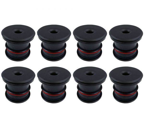 These bushings offer great vibration isolation and will not crack or breakdown like the OEM foam or rubber bushings. Also comes with corrosion resistant coated steel cups and bolts.
