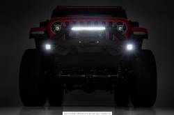 Each kit includes a modular integrated fog light mount that allows you to run the included Rough Country 2-inch led cubes. This front bumper also features a built-in Rough Country 20in Single-Row Black-Series LED Light Bar, providing 7,200 lumens and 100 watts of forward-facing illumination to help you easily see the trail ahead.