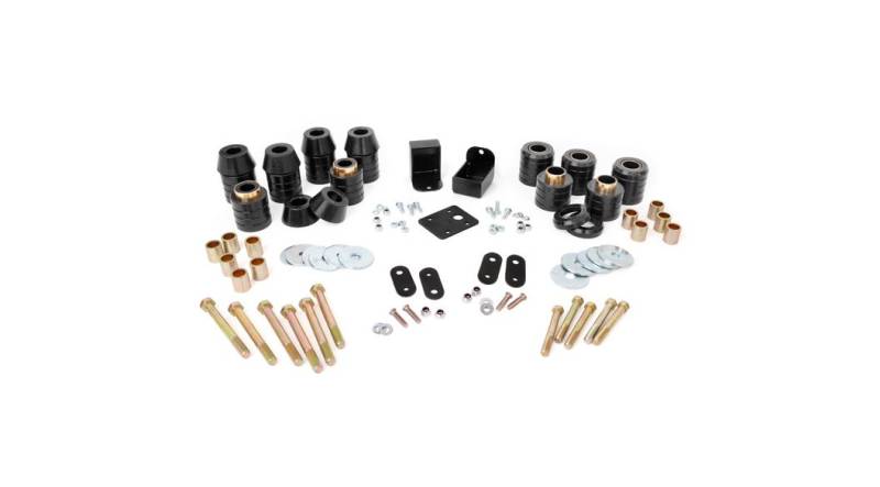 Rough Country's innovative new 1-inch Polyurethane Body Lift reduces chassis noise and vibration, featuring specially blended Polyurethane bushings that are resistant to fluids and road grime. Kit includes Grill Support Brackets, Radiator Shroud Relocation Brackets, Shift Relocation Brackets for automatic transmissions and durable Grade 8 Hardware.