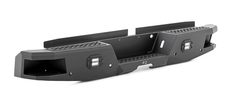 Rough Country’s Rear LED Bumper is made of durable, all-steel construction that’s ready to handle whatever you dish out. Each bumper features two Rough Country Black-Series 2in LED Flush Mount Cubes for rear illumination and two integrated steps for easy access to the bed. Each bumper also includes sensor relocators to allow you to retain the vehicle’s anti-collision system.