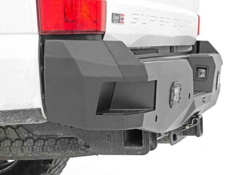 Give the rear of your F-250 / F-350 an aggressive, new appearance with Rough Country’s Rear LED Bumper. This easy-to-install upgrade gives your truck an improved look and better functionality, with two pre-installed Rough Country LED cubes that offer impressive off-road illumination!