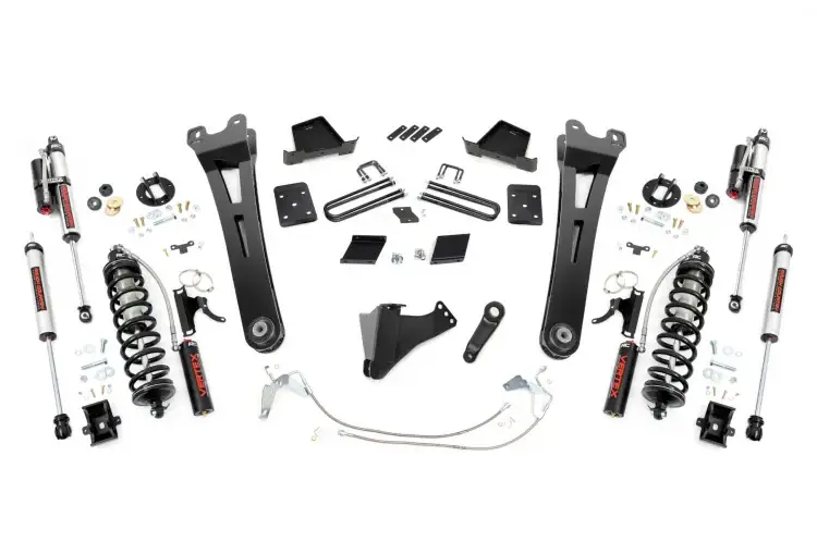 Superior Ride Quality. Take your third-generation Ford Super Duty to new heights with Rough Country's 6-inch Radius Arm Coilover Conversion Suspension Lift! This all-inclusive kit comes with everything you need for a total transformation of your truck. Run up to 37in tires while preserving the smooth, factory ride quality with this impressive upgrade.