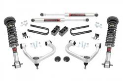 Improved Ground Clearance and Ride Quality. Rough Country's 3-inch Bolt-On Kit offers easy installation and aggressive good looks at an incredible value. Take your truck to new heights with this excellent option for your ninth-generation Ford F-150. High-Quality Construction. This kit features a set of high-quality, Forged 6082-6 Aluminum Upper Control Arms designed to make alignment adjustments easier and durable rubber bushings. These arms are designed to promote a factory-like geometry by keeping the ball joint at optimum angles after lifting. This design allows for an improved, greater range of motion from the ball-joint, with less stress, wear and tear. Also included are a set of rear blocks to provide lift height in the rear. Once installed, this kit gives your truck plenty of ride height for up to 34in tires while offering a clean, level look from front to rear. Retain your stock wheels with this kit when you use Rough Country’s 0.25-inch wheel spacer. Installation and Warranty. This all-inclusive kit comes with everything you need, and installation is a piece of cake compared to other kits on the market! Featuring a 100% bolt-on installation process that requires zero cutting or drilling, this kit can be installed using common tools in a home garage, and allows the truck to be returned to stock at any time if so desired. You also get peace of mind knowing that your purchase comes with a limited lifetime replacement warranty for manufacturer defects. With Rough Country's industry-leading warranty, you can be sure that your Rough Country lift kit is protected from structural and workmanship damage after the date of purchase.