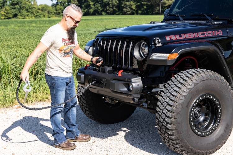 Heavy-Duty Steel Construction. Rough Country's Winch Mounting Plate is the perfect addition to your JL. With its durable black carbon powder coating and heavy-duty 7GA steel construction, this mounting plate can handle anything the off-road throws at it. It has been engineered NOT to impede airflow to the radiator, so you can tackle any obstacle without worrying about your engine overheating. The flush design leaves only the hawse fairlead and tow hook exposed, giving your Jeep a clean, polished look while ensuring maximum functionality.
